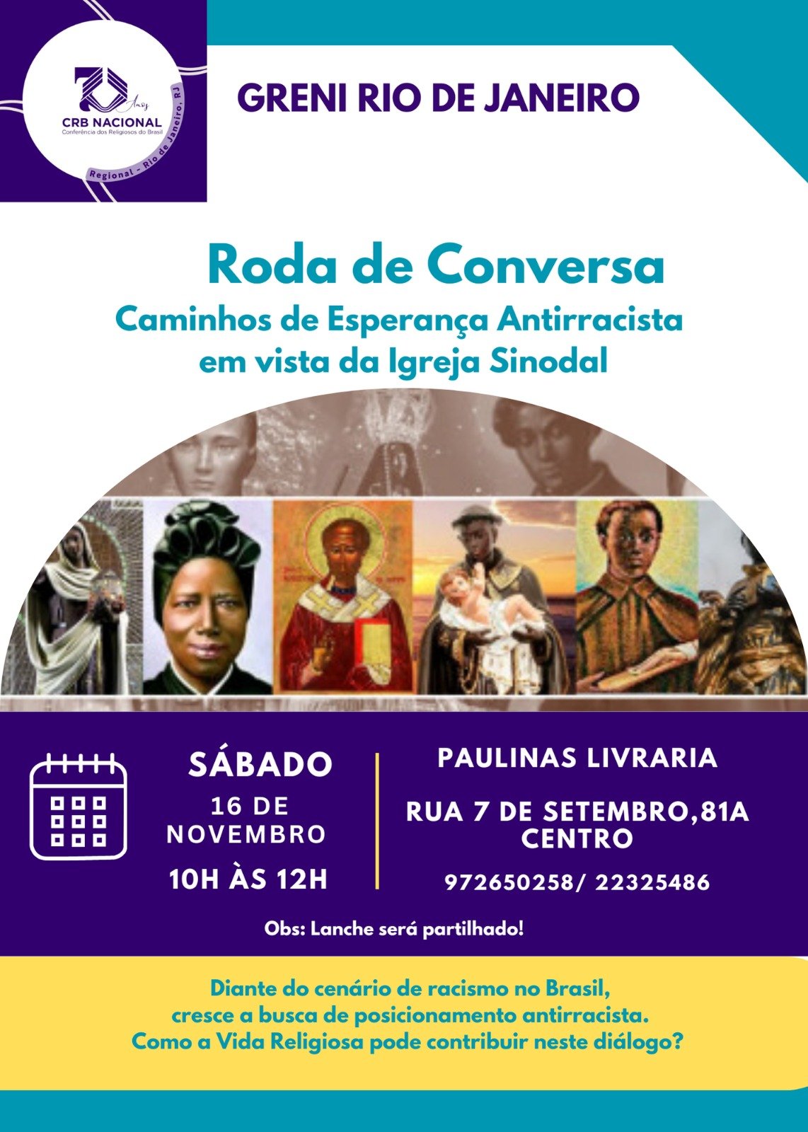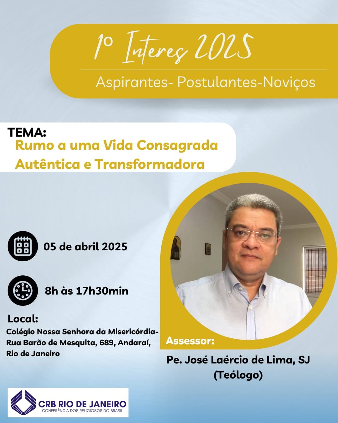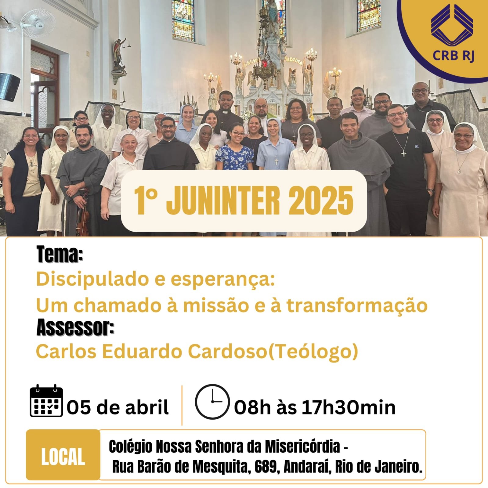 CONFERÊNCIA DOS RELIGIOSOS DO BRASIL –REGIONAL RIO DEJANEIRO CNPJ 33.460.940/0025-90–Tel:212220-4094/celzap.2499821-0777 E-mail coordenação.rj@crbnacional.org.br Edifício São Borja, Av.