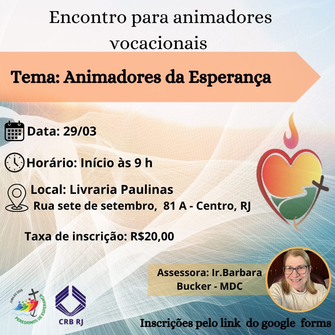 📌 Tema: Animadores da Esperança 📅 Data: 29/03 ⏰ Horário: Início às 9h 📍 Local: